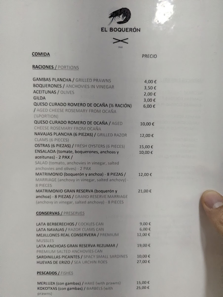 The menu at Bar El Boqueron offers a straightforward yet satisfying selection that highlights fresh seafood and classic Spanish tapas. This is a place where simplicity meets quality, focused on sharing casual bites and authentic flavors that reflect traditional coastal dining.